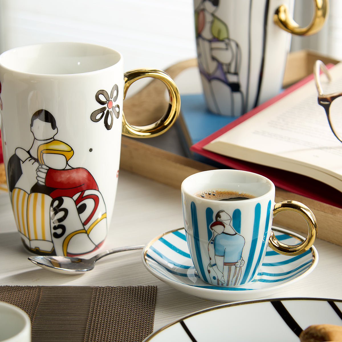 The Egan Abbracci Espresso Cups with Saucers turn the espresso ritual into a gesture filled with emotion. The designs Us, Close, Moments, and With You tell the story of bonds, love, and everyday closeness through delicate, contemporary illustrations.
