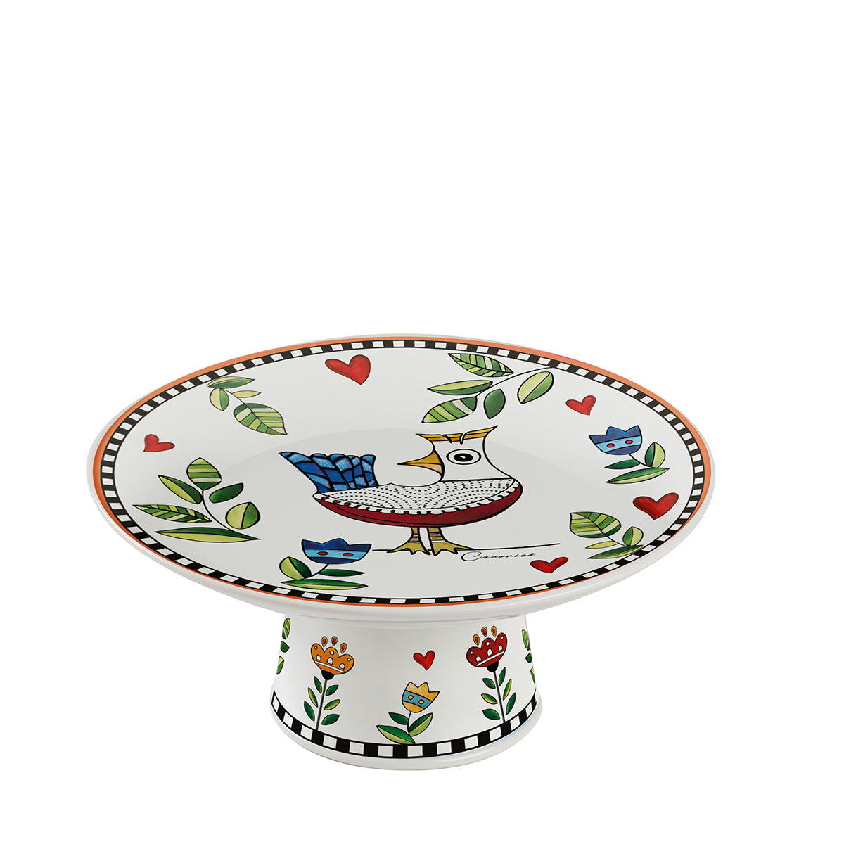 L'"Alzata Cocoricò Gialla 19X9" di EGAN è un esempio raffinato di come la funzionalità possa incontrare l'estetica in maniera giocosa e accattivante. Questa alzata, con il suo diametro di 19 cm e altezza di 9 cm, è impreziosita da un disegno vivace che raffigura uccelli stilizzati in un gioco di forme e colori caldi, su uno sfondo che esalta la luminosità e la vivacità dell' arancio. Perfetta per esporre dolci, frutta o per servire antipasti con eleganza, questa alzata trasforma ogni presentazione in un'opera d'arte. Porta un tocco di allegria e stile in ogni occasione, acquista ora per rendere i tuoi incontri ancora più speciali!