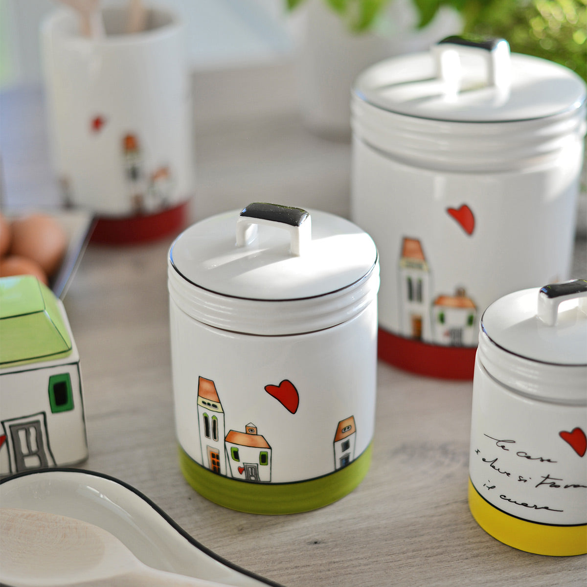 Aggiungi un tocco di calore e colore alla tua cucina con il Barattolo 'Le Casette Verde' di EGAN, dimensioni 9x12 cm. Questo barattolo, realizzato con la cura e la qualità che contraddistinguono i prodotti EGAN, è l'ideale per conservare spezie, erbe o piccole delizie. La base verde vivace si abbina splendidamente con il design amorevole e giocoso delle casette italiane, facendo di questo barattolo non solo un oggetto pratico, ma anche un vero elemento decorativo. Il coperchio ermetico assicura la freschezza del contenuto, mentre la ceramica di alta qualità garantisce durabilità e stile. Perfetto per aggiungere un po' di gioia alla routine quotidiana, questo barattolo è un pezzo da collezione o un'idea regalo affettuosa per chi ama gli accenti di design nella propria casa. Acquista ora e porta l'essenza di EGAN nel tuo spazio più amato.
