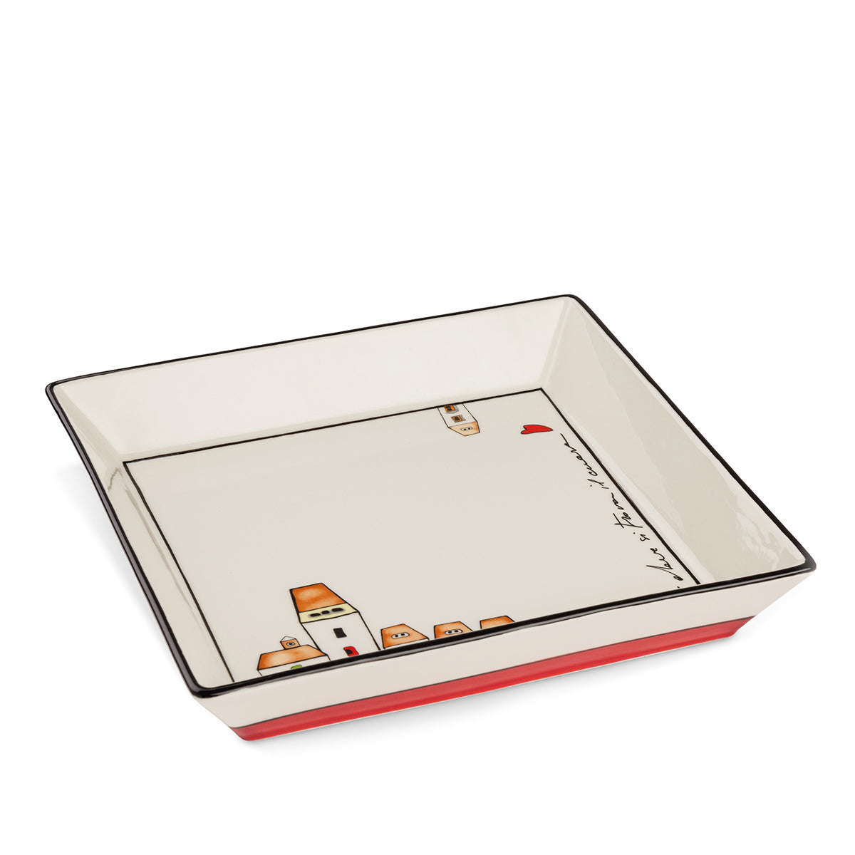 Il Centrotavola 'Le Casette Rosso' di EGAN, con le sue misure di 26x26 cm, è la scelta perfetta per chi ama aggiungere un tocco di calore e personalità alla propria tavola. Questa elegante ciotola quadrata, impreziosita da un bordo rosso vivace e una delicata rappresentazione delle caratteristiche case italiane, è ideale per esaltare ogni composizione, sia che tu la utilizzi per frutta fresca, decorazioni floreali o come pezzo decorativo da solo. La ceramica di alta qualità assicura resistenza e una lunga durata, mentre il design accattivante rende questo centrotavola un vero e proprio punto di conversazione. Perfetto per cene formali o per aggiungere un tocco di stile alle tue riunioni familiari, il Centrotavola 'Le Casette Rosso' porta l'eleganza e l'ospitalità italiana direttamente nella tua casa.
