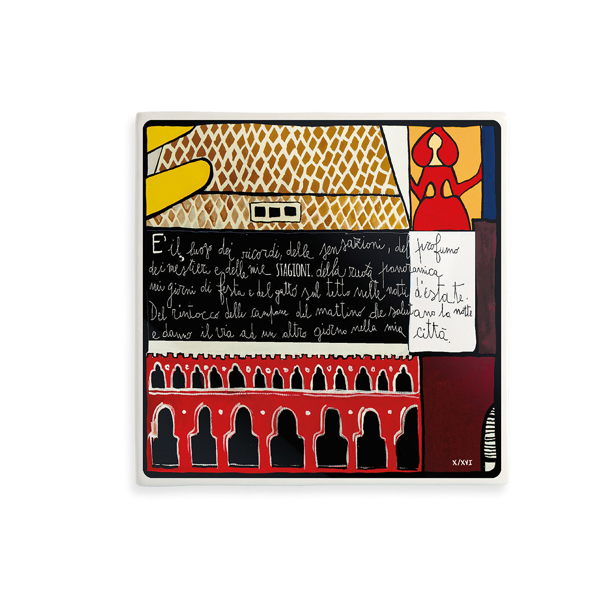Le Formelle in ceramica "Nella mia città" sono la chiave con cui raccontare le emozioni, un viaggio attraverso le immagini, una cornice e 16 incipit. L'attenzione ai particolari testimonia l'accurata lavorazione artigianale totalmente Made In Italy.