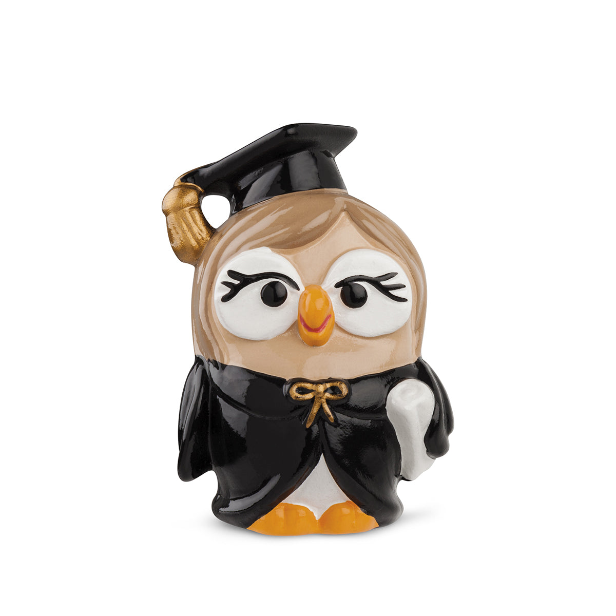 Una gufetta laureata in ceramica smaltata. Simpatica idea regalo o bomboniera per laurea.