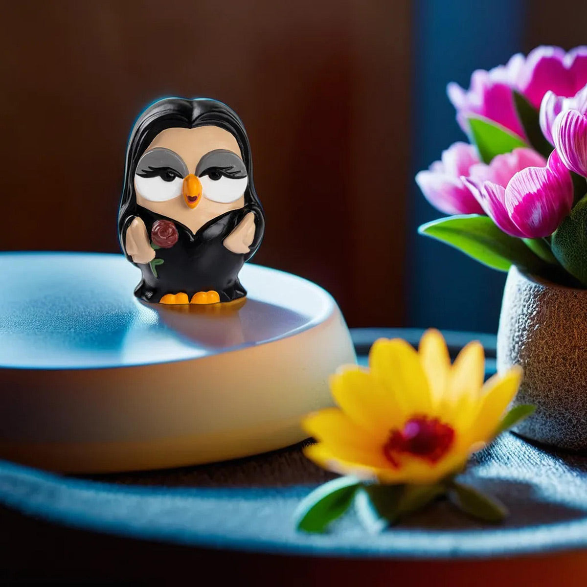 Vestita del suo iconico abito nero, con occhi magnetici e tenendo tra le mani una rosa, simbolo della bellezza che sfiorisce, questa rappresentazione del matriarca della famiglia Addams è tanto seducente quanto enigmatica. Un'aggiunta intrigante per gli ammiratori dello stile oscuro e sofisticato, il Goofo Morticia è la quintessenza dell'eleganza gotica. Non lasciatevela sfuggire, aggiungete un pizzico di charme Addams al vostro quotidiano!