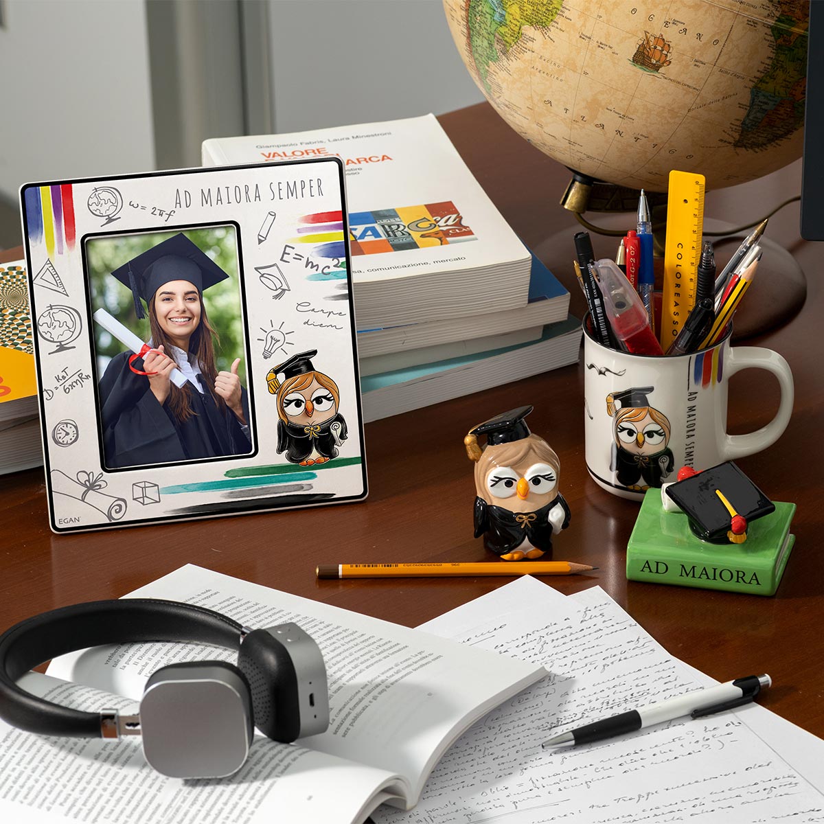 Un libro con cappello laurea in ceramica smaltata decorata a mano. Ideale come simpatica ed originale bomboniera di laurea.