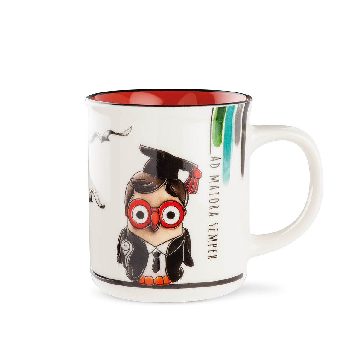 Una mug in porcellana con gufetto laureato. Simpatica idea regalo o bomboniera per laurea.