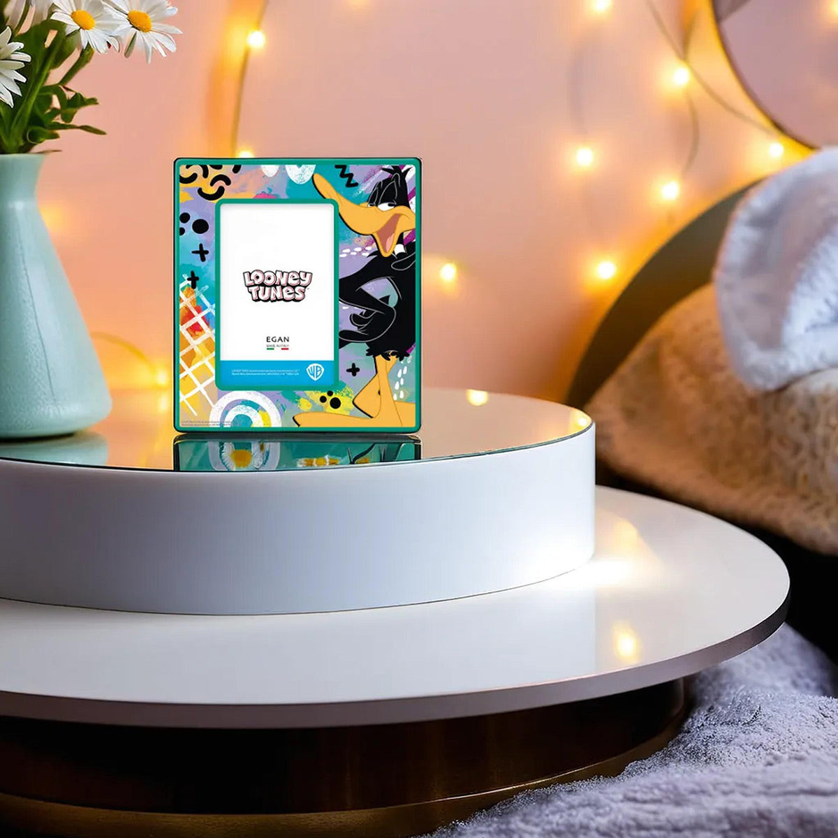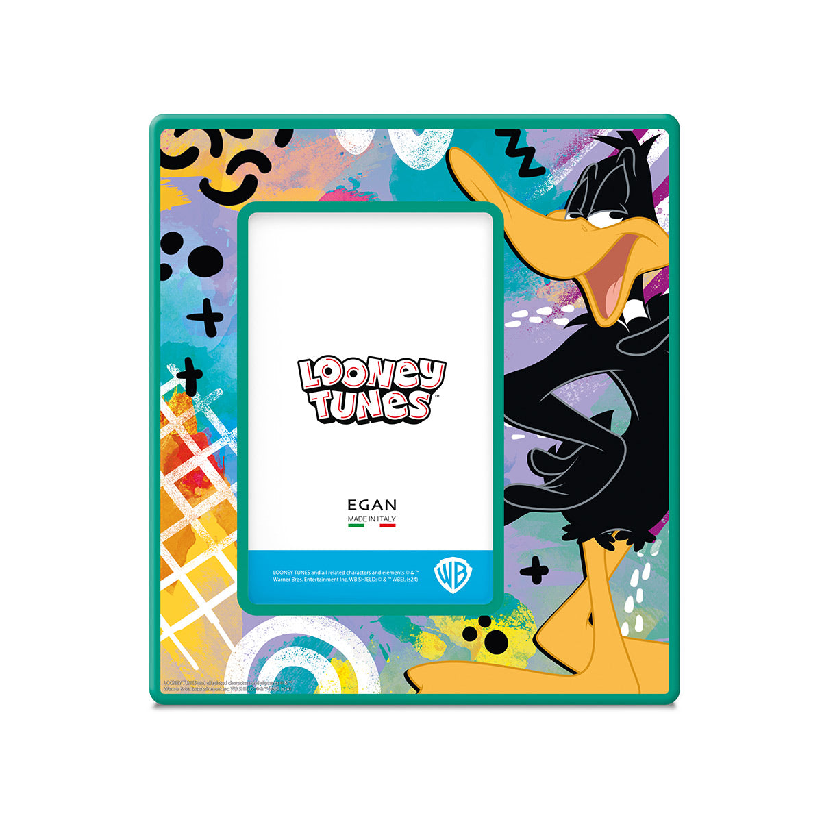 Conserva i tuoi ricordi con stile grazie al "Portafoto Daffy Duck 18X20 (INT. 10X15)" di EGAN. Questa cornice, che misura 18x20 cm per foto da 10x15 cm, presenta l'inconfondibile Daffy Duck, aggiungendo personalità e un senso dell'umorismo inconfondibile alla tua collezione di foto. Perfetto per gli amanti dei Looney Tunes che vogliono circondarsi delle espressioni più iconiche e amate del mondo dei cartoni animati.