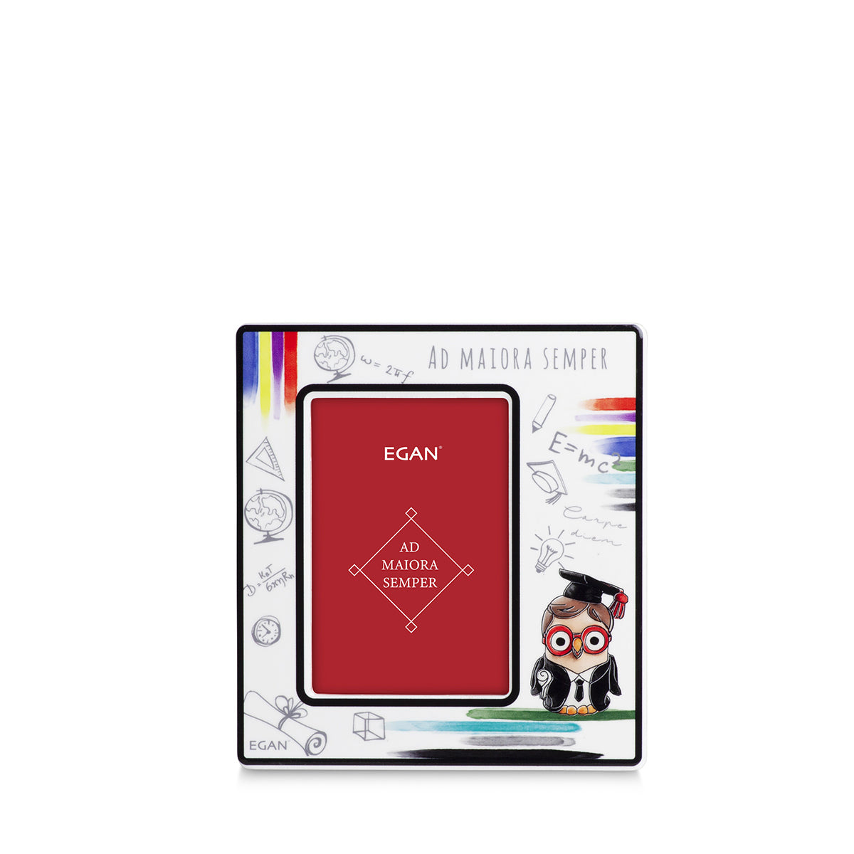 Un portafoto in ceramica smaltata con gufetto laureato. Simpatica idea regalo o bomboniera per laurea. Tempi di consegna: 10 giorni circa.