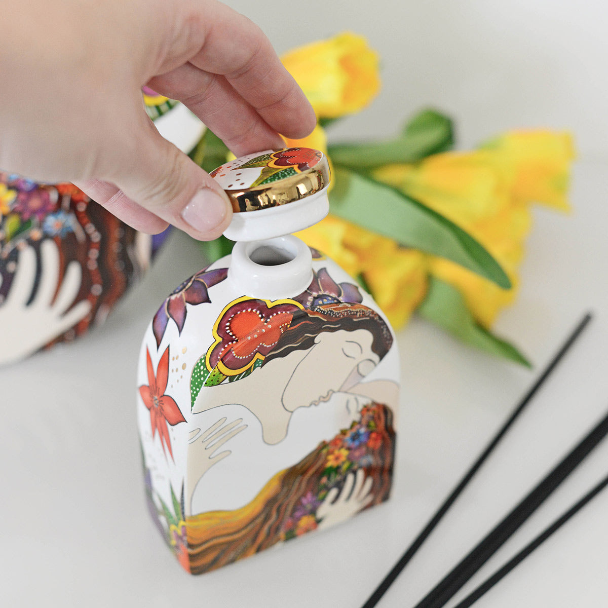 Il diffusore a bastoncini Laurel Burch è un'idea originale per un bellissimo regalo e si coordina molto bene con gli altri accessori della linea First Kiss.