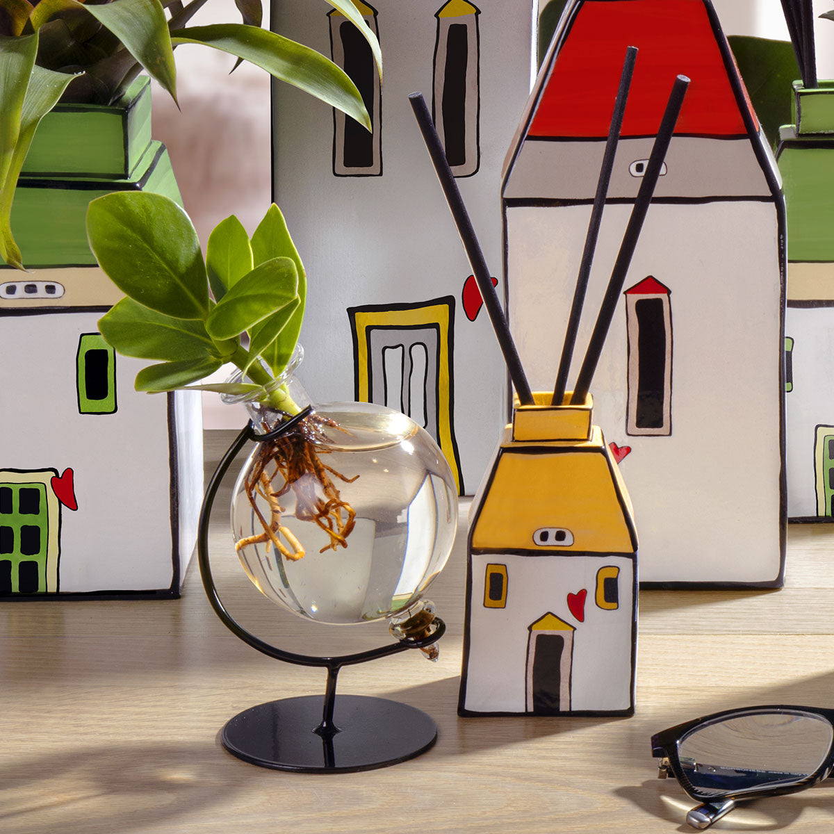 Porta l'essenza della natura e la freschezza della campagna italiana nella tua casa con il Profumatore 'Le Casette' di EGAN, accompagnato da quattro bastoncini diffusori di fragranza. Questo elegante oggetto di design è ispirato alle pittoresche abitazioni rurali, rifinito con un tetto giallo brillante che aggiunge un tocco di colore e vivacità a qualsiasi ambiente. La ceramica di alta qualità assicura la diffusione delicata del profumo, creando un'atmosfera accogliente e rilassante. Perfetto come centrotavola o accessorio da mensola, il profumatore 'Le Casette' è un'idea regalo unica per chi ama dettagli di stile che parlano di tradizione e innovazione. Acquista il tuo oggi e immergiti in un viaggio sensoriale attraverso le fragranze della collezione EGAN.