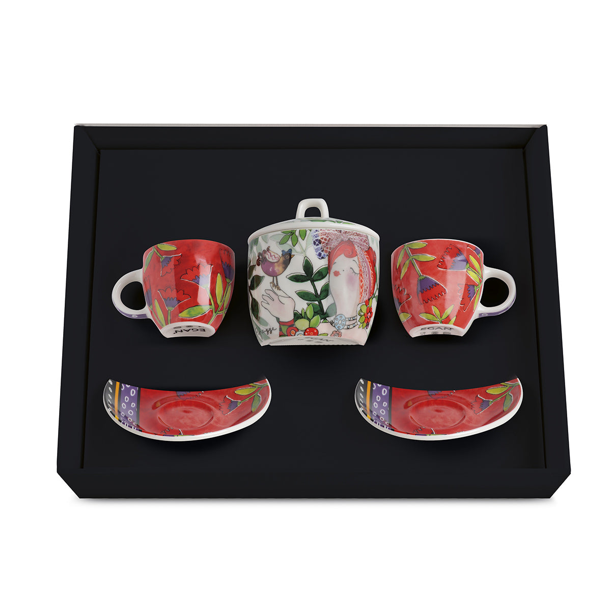 Il Set 2 Tazze Caffè + Zuccheriera "Le Pupazze Rosso" di EGAN porta un'ondata di passione e vitalità nella ritualità del caffè quotidiano. Questo set, vibrante con tonalità di rosso e decorato con disegni ispirati alla natura, è un tributo all'energia e alla bellezza della vita. Ogni pezzo è attentamente realizzato e dipinto a mano, evidenziando l'arte e la maestria degli artigiani italiani. È una scelta perfetta per chi vuole dare un tocco di colore e arte alla propria pausa caffè. Accendete i vostri momenti di convivialità con il Set 2 Tazze Caffè + Zuccheriera "Le Pupazze Rosso", ora disponibile per l'aggiunta al vostro carrello...