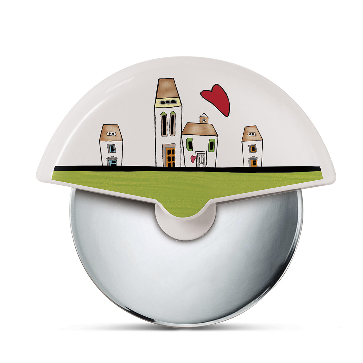 Il Tagliapizza 'Le Casette' di EGAN, con la sua superficie decorata dalle tipiche casette italiane e un cuore caldo disegnato con cura, è lo strumento perfetto per aggiungere un tocco di amore e allegria alla tua esperienza culinaria. La lama in acciaio inossidabile garantisce una perfetta esecuzione nel taglio delle tue pizze, mentre il design ergonomico assicura una presa comoda e sicura. Questo tagliapizza non è solo un utensile pratico, ma anche un pezzo da conversazione che porterà lo spirito dei borghi italiani direttamente nella tua casa.