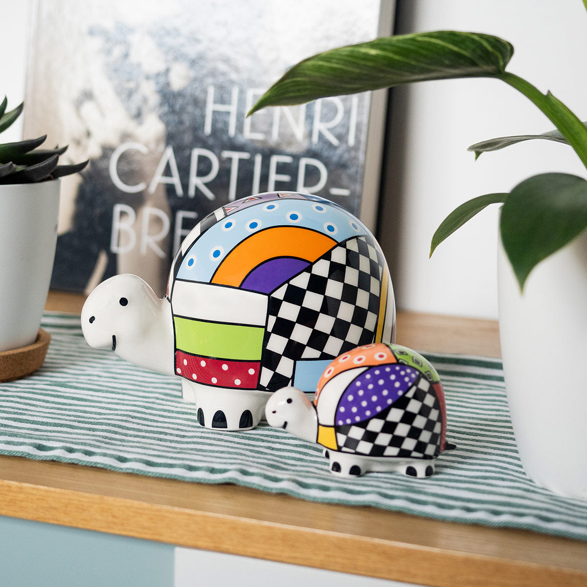 La Tartaruga Warà di EGAN è un esempio squisito di design italiano, un complemento d'arredo che combina estetica moderna con un tocco giocoso. Ogni pezzo, dalle dimensioni di 8x6 cm, è caratterizzato da un patchwork di motivi vivaci e linee audaci, riflettendo un gusto contemporaneo e un'espressione artistica unica. Questa tartaruga non è soltanto un oggetto d'arte, ma un simbolo di allegria e colore che può vivacizzare ogni spazio della casa. Aggiungete la Tartaruga Warà al vostro carrello oggi stesso e portate a casa un sorriso.