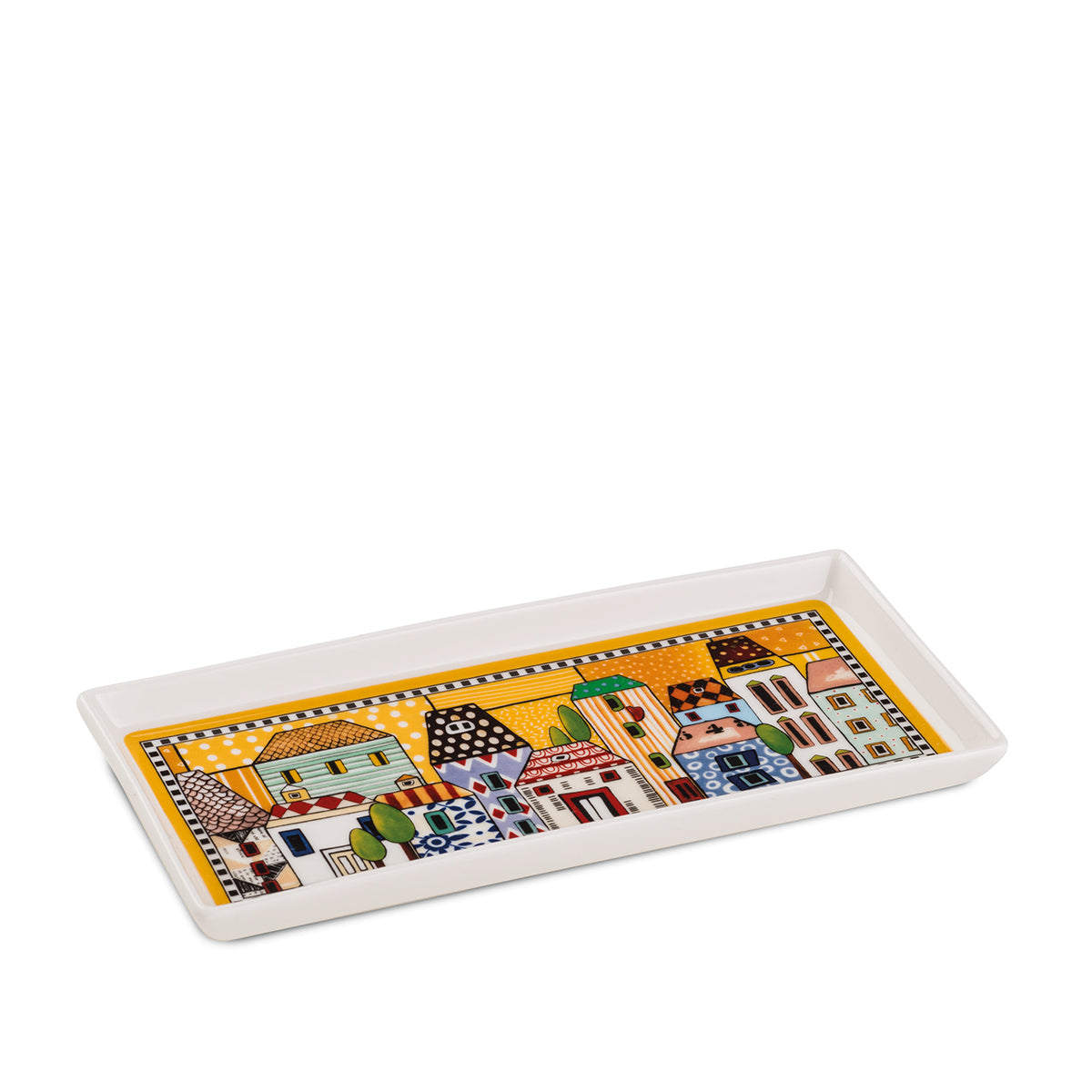 Scegli il Vassoio Paese Mio Giallo 19x9 per un tocco di allegria e originalità. Il suo formato rettangolare è perfetto per servire antipasti o per arricchire la tua tavola con un dettaglio di design. I colori vivaci e il tema italiano lo rendono unico. Porta in casa tua un pezzo di creatività!